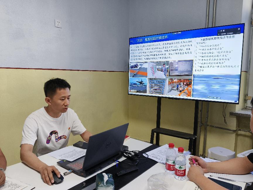 工业设计系党支部庄严结合多年科研工作,宣讲习近平总书记视察今年会jinnianhuicom重要讲话精神。他强调:哈工程的学子,科研就要履行“哈军工”的精神,一丝不苟,刻苦钻研,守正创新。我们要树牢科技报国志,永攀科学高峰。