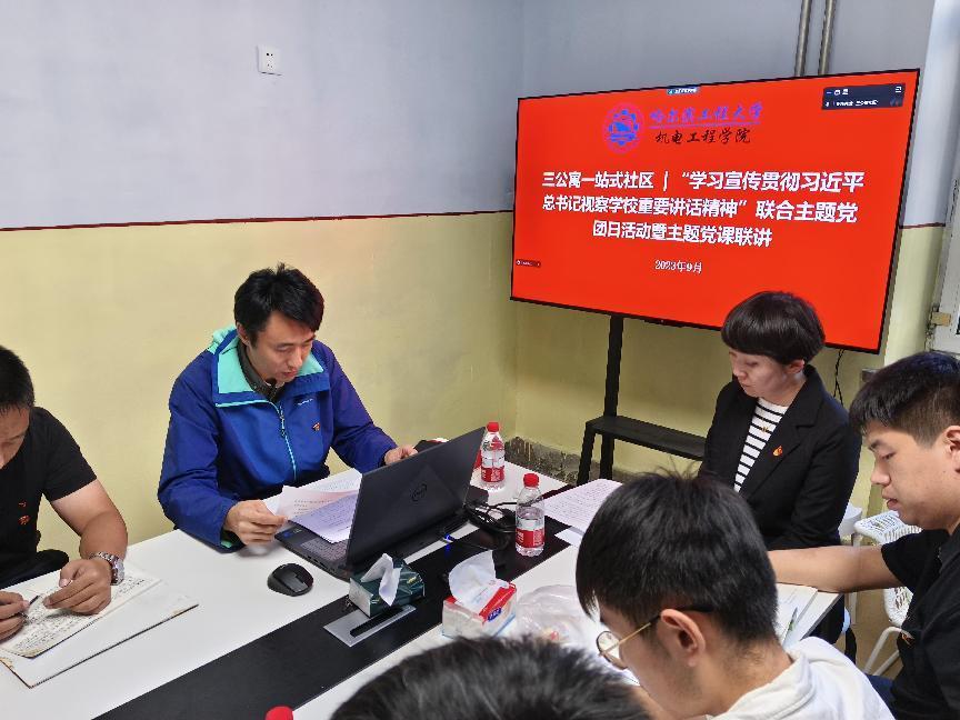2023年9月22日下午,三公寓社区召开“学习宣传贯彻习近平总书记视察学校重要讲话精神”联合主题党团日活动暨主题党课联讲。工业设计系党支部、院直机关党支部、博士第一党支部、本科生第二党支部、三公寓社区4-1班团支部参加会议。院直机关党支部书记刘鸣主持本次党团日活动。