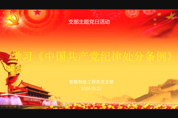 2024年5月22日下午,智能制造工程系党支部召开“学习《中国共产党纪律处分条例》”主题党日活动,智能制造工程系全体教师参加会议。院长徐建安以“认真学习《中国共产党纪律处分条例》推动党纪学习教育走深走实”为题讲授了一堂生动的专题党课。